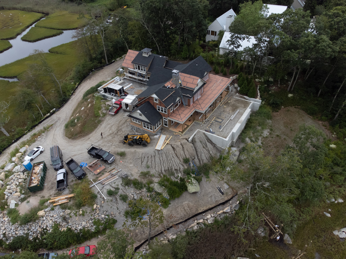 So we now see the owners vision. I had hoped to see an effort that would attempt to minimize environmental impact; A home that would enable the occupants to focus on the incredible wetlands surrounding the property. Instead, they opted to be the focus themselves. The house is enormous, and seems completely out of place. Far worse that I had imagined. I see it as a shameful architectural monstrosity.