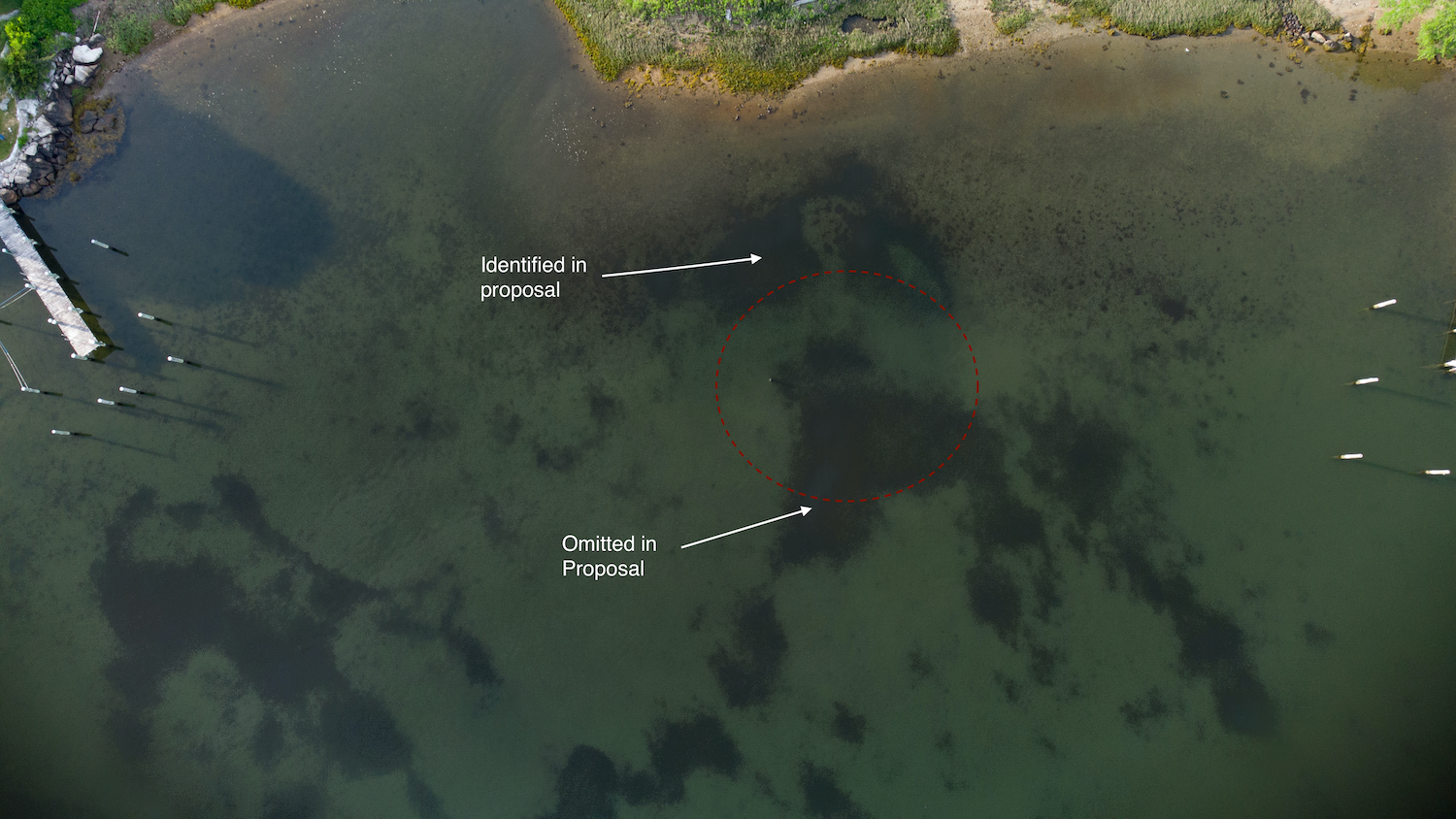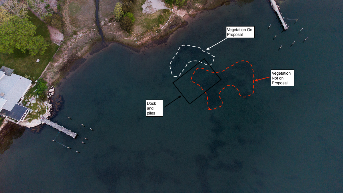 The proposal submitted by Louriero Engineering on behalf of Mr. Chandrasekhar Naik, showed a limited area of underwater vegetation that the dock would cross over. What it did not show is a large area of vegetation further out that would actually be covered by the dock and boats. The proposed dock and boats would cause severe damage to this vegetation.