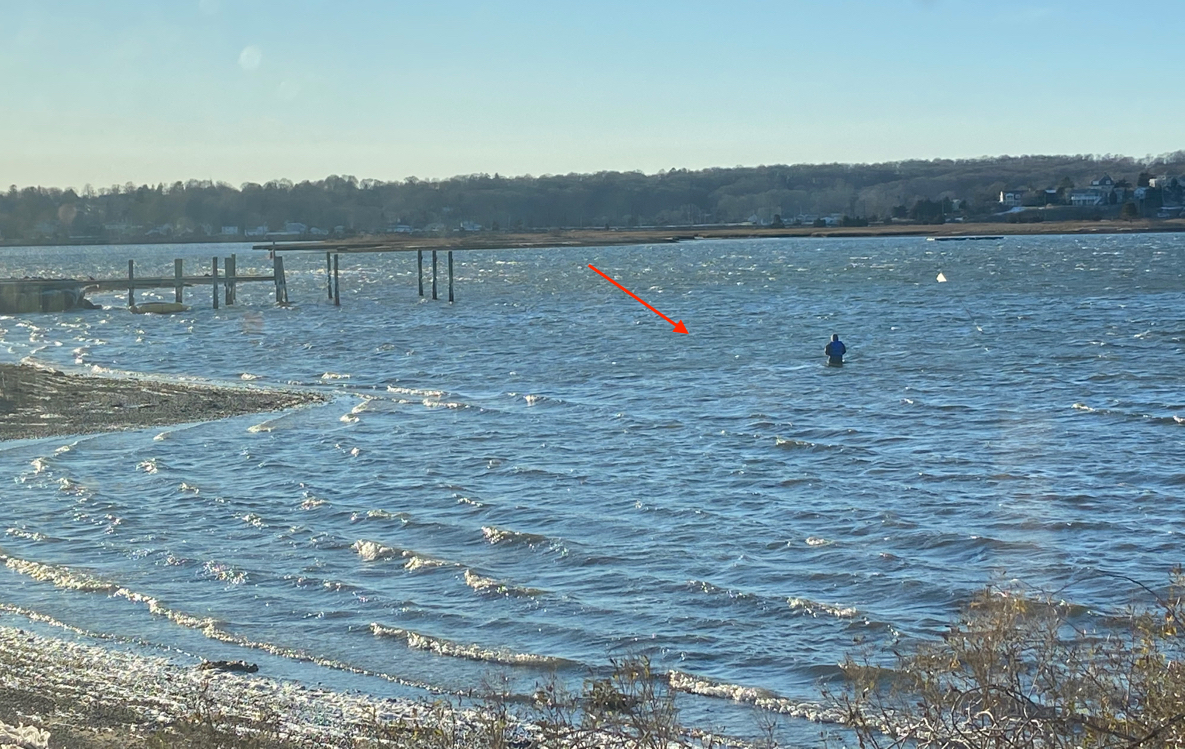 Here is an example of the depth very close to the proposed dock site at low tide. The water stays shallow for a long ways out. Hardly a good location for a large boat.