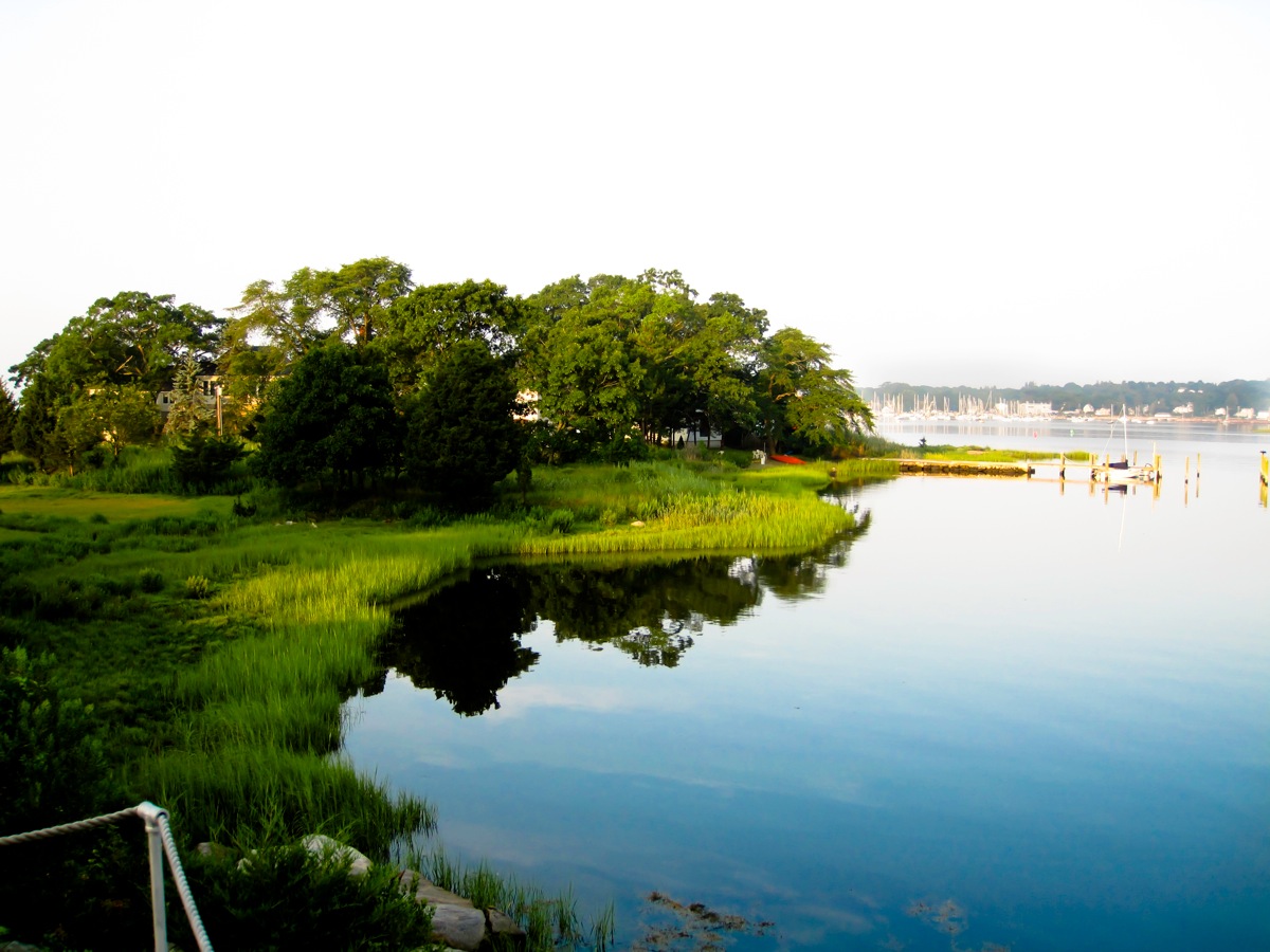 The property has no house and is surrounded by water at very high tides. A widely recognized environment expert identified that gravel had been dumped on the shore and that a driveway had been built over wetlands. Both of these actions constitute violations of CT wetlands law. DEEP has cited the property owner for these infractions.