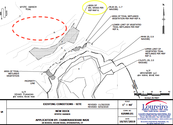 Notice there is no mention of Eelgrass or SUV within the red circle. It isn't clear why this large bed of SAV was not addressed. Given the current importance of SAV, a basic part of their planning should have been a careful survey of the proposed location of the dock and boats. It seems implausible that the high powered team assembled by Mr. Naik simply overlooked such a key issue. It is reasonable to conclude that this critical detail was intentionally not included in the proposal since this would have made approval of the plan less likely.